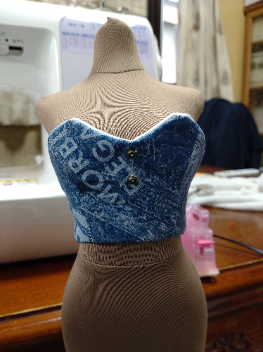 以前作ったジーンズボレロの残布にて、ビスチェっぽいものを作った。